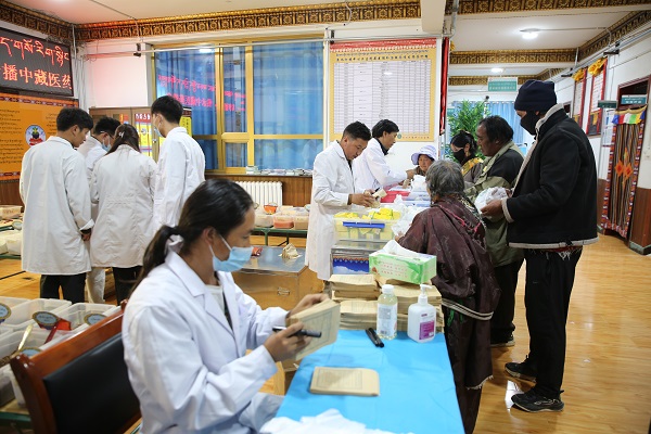 在义诊工作期间医疗队队员不顾因高寒缺氧所带来的身体不适,每天按时投入到义诊服务工作,详细询问村民们的身体状况,耐心细致的检查、分析病情,讲解注意事项,认真解答患者们关于常见病、多发病的预防诊治及愈后疑难问题。在义诊过程中,给患者做了详细诊断根据各患者的实际情况,为患者开具药方发放免费药品,为有需要的患者指导了下一步的诊疗方向。同时也为当地村民进行了健康知识宣传和发放宣传资料等医疗服务。