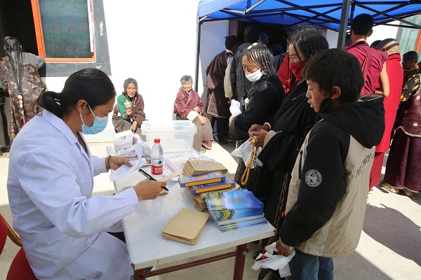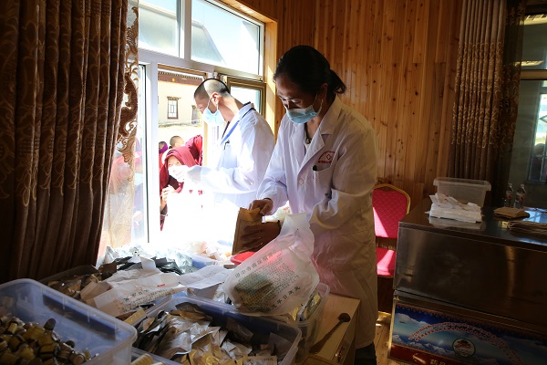 在义诊工作期间医疗队队员不顾因高寒缺氧所带来的身体不适,每天按时投入到义诊服务工作,详细询问村民们的身体状况,耐心细致的检查、分析病情,讲解注意事项,认真解答患者们关于常见病、多发病的预防诊治及愈后疑难问题。在义诊过程中,给患者做了详细诊断根据各患者的实际情况,为患者开具药方发放免费药品,为有需要的患者指导了下一步的诊疗方向。同时也为当地村民进行了健康知识宣传和发放宣传资料等医疗服务。