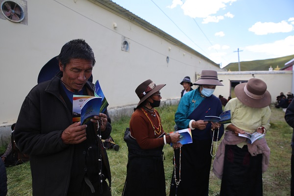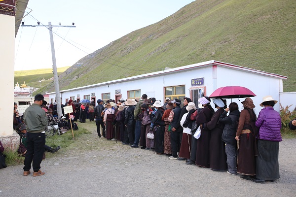 更嘎尖措--医疗队主治医师在为患者把脉问诊